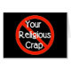 Keep the Bible thumpers off your porch and out of your immediate space with this familiar red circle slash and the words "Your Religious Crap." Great gift for Atheists and Freethinkers.
