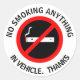 NO SMOKING ANYTHING IN VEHICLE. THANKS CLASSIC ROUND STICKER