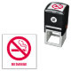Cigarette icon with red prohibited circle. Custom text "No Smoking"