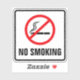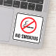 A no smoking sticker featuring a black cigarette under a red, crossed over circle and the text "No smoking" surrounded by a black border. Square sticker with rounded corners.