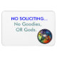 This was my way to say, NO THANK YOU, without being terribly rude. I was getting 6 to 10 people at my door from schools and churches, daily. And as I was not interested in either....well, I made my own. From the colourful Pentacle wheel to the interesting choice of words, it's not your run of the mill NO SOLICITING sign.