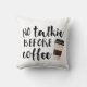 If you absolutely can't bear to even think about conversation before you've had your morning joe, snuggle up to this throw pillow. Design features "No Talkie Before Coffee" in black handwritten-style text with a takeaway coffee cup illustration.