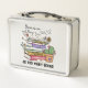 This is a standard metal lunchbox that appears to work just fine. We designed this box ourselves with an uploaded photo and custom text on the front and back. It looks absolutely beautiful except the front of the lunchbox is not centered like it shows in the photo. The print borders don't align with the inset flat part of the box where the preview photo online showed it perfectly centered in there. The back looks nice and centered though.