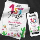 Celebrate your little one's first birthday with a fun and festive fiesta! This colourful invitation features a cute cactus and maracas with a playful "No Time To Siesta" message. Perfect for a girl's 1st birthday party.