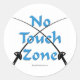 No Touch Zone design features two crossed epee swords, and makes a fun and unique gift for fencers. Also available in matching pink fencing design for women - see shop front for details.