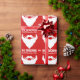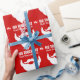 Christmas wrapping gift paper in warm red and white. Reads NO TOUCHING until December 25th, fun bold Santa's / father Christmas's famous beard and a no touching sign graphic patterned Christmas print. Graphics and design by Sarah Trett.