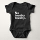 Grab this "No touchy touchy" funny saying introverted tee shirt to show your sense of humour by wearing this basic cool text style. for Black and White Contemporary Art Lovers. I'm sure that it can spark many conversations and will help with breaking the ice. This funny awkward design is a great gift idea for introverted employees, colleagues, coworkers, managers, supervisors, friends, or family, and also makes a great birthday, holiday gift, or Christmas present. (YOU CAN CHANGE AND CUSTOMIZE THIS TEXT DESIGN OR ANY TEXT YOU WANT IN MY STORE!).