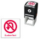 U-shaped arrow icon in red prohibited circle. Custom text.