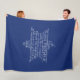 Fleece blanket with the Star of David (Magen David) formed with the words from Isaiah 54:17 "No weapon that is formed against you shall prosper, and every tongue that shall rise up against you in judgment you shall prove wrong. This is the heritage of the servants of YHVH and their righteousness is of me, saith YHVH." White text on a dark blue background colour.