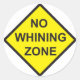 Let your kids know they are in a No Whining Zone when they see this bight yellow traffic sign posted in plain view. When the whining starts, just point to the sign!