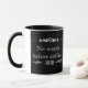 This "No Words Before Coffee" mug is for people who can't function before their first cup. The design is an homage to silent movies and features the double-sided image of a black, silent movie, title card. The open face, white writing reads, "No words before coffee." It serves as a warning to all who dare to approach you first before you are fully caffeinated. This mug is great for film buffs, coffee lovers, and coffee loving film buffs.