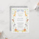 Adorable jungle animals with sweet vines and leaves surround this adorable Baptism invitation. Blue elephants bookend a cross at the top of the invite with giraffes, monkeys, zebras, and lions rounding it out. Your text is in the middle of it all to announce your little one's big day.