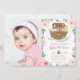 Noah's Ark Pink Floral Girl Baptism Christening Invitation