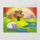 Cute cartoon illustration of Noahs ark resting on the hill top whilst the flood waters are abating and the animals are starting to venture outside. Image available on various gifts and products. Postcards.