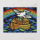 Noah's Ark, rainbow, and peace dove abstract geometric design.