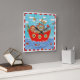 This beautiful print of a pen and watercolour illustration by Helen McCartney Designs features a group of sweet animals huddled together aboard Noah's Ark.