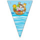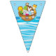 This cute design features an ocean scene with Noah's Ark full of baby cartoon animals including: lion, monkey, panda, turtle, crocodile, giraffe, elephant, zebra, rabbit, crab, tiger, hippo, bear, racoon and rhino.