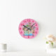 Noah's Ark Wall Clock with a pink background. Great baby shower gift for the mum of a newborn girl. delightfuldoodles.