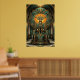 A majestic stag with large antlers framed by sun rays and geometric architecture. Perfect for a masculine or classic vintage interior.