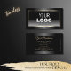 Make a lasting impression with this elegant and modern business card design featuring a black and white colour gradient with a luminous shimmery light gold decor frame.