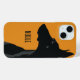 A minimalist iPhone case design for dog owners or lovers which has been put on yellow background. The design introduces a silhouette of a black Doberman accompanied with the default customisable thanks.