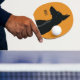 A minimalist skateboard design for dog owners or lovers which has been put on yellow background. The design introduces a silhouette of a black Doberman accompanied with the default customisable thanks.