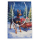 This striking Christmas painting features a confident Doberman protecting a sleigh of gifts. Strong winter visuals make this perfect for modern holiday décor and dog-enthusiast collections.