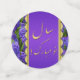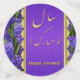 Noble, elegant Persian New Year illustration: Purple-gold border on a hyacinth flower field with New Year wishes in english and farsi.