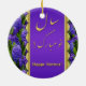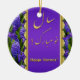 Noble, elegant Persian New Year illustration: Purple-gold border on a hyacinth fower field with New Year wishes in english and farsi.