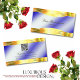 The design features shimmering royal blue colours with noble decorative gold borders.
