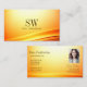 Noble Shimmery Orange Curved Decor Monogram Photo Business Card