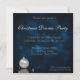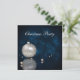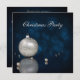 An elegant Christmas Illustration: a silver Christmas ball and white pearls on a dark blue bokeh background. Matching envelope for this Invitation: