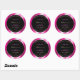The design features a bright shimmering hot pink glitter frame with tiny sparkling stars on a plain black background.