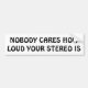 Nobody Cares How Loud Your Car Stereo Is Bumper Sticker