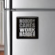 Add a touch of motivation to your fridge or workspace with our 'Nobody Cares, Work Harder' distressed text magnet. This isn't just any magnet; it's a daily reminder to stay focused and driven. The rugged, distressed text gives it a bold look, while the powerful message serves as a constant source of inspiration. Whether on your fridge or office whiteboard, let this magnet be a symbol of your dedication to working hard and achieving your goals.