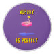 Bring humour and charm to your space with this quirky "Nobody is Perfect" design featuring a relaxed flamingo floating in a pink swimming ring. Set against a bold purple background with playful 3D-style yellow lettering, this fun and eye-catching design is perfect for flamingo lovers, summer vibes, and anyone who embraces imperfection with a smile. Ideal for gifts, home decor, and accessories!