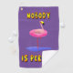 The golf towel exceeded my expectations! My husband actually approved of it! He liked the picture quality, thickness and overall usefulness of the golf towel I ordered to commemorate his lowest ever golf score. He liked it so well that I ordered 8 more towels with photos of his home golf course. Each one of the eight has the name of one of his golf group members. I will give them as party favors at my husband's 70th birthday party later this year. The different names were easy to add because the Zazzle template is so very easy to use. The colors were bright and authentic in all 9 of the towels that I made. The one of the 9 that I ordered has come out of the wash and line dry looking great.