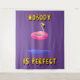 Bring humour and charm to your space with this quirky "Nobody is Perfect" design featuring a relaxed flamingo floating in a pink swimming ring. Set against a bold purple background with playful 3D-style yellow lettering, this fun and eye-catching design is perfect for flamingo lovers, summer vibes, and anyone who embraces imperfection with a smile. Ideal for gifts, home decor, and accessories!