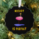 Nobody is perfect - flamingo with swimming ring tree decoration card