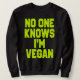 Nobody Knows I'm Vegan Sarcastic Cool Gym Workout Sweatshirt