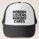 I totally love my hats. I love the designs,how the trucker hat fits, the product is amazing. And I can't stop buying them. Very well done, centered well.