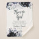 Nocturnal Floral Watercolor Lush Flower Design with Hand Painted Stems, Vines, Leaves, Foliage, Watercolor Paint Brush Strokes. Colourful Navy blue, Dusty blue, Dark almost Black Grey, and hints of Mauve pink. With Hand Drawn Line elements, Swirly Chic Hand Lettered Brush Script Fonts and Elegant Floral Top Border - Flower Girl Heartfelt Quote Keepsake Sherpa Blanket!