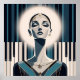Experience the visual rhythm of music with this stunning Art Deco-inspired masterpiece. This artwork features a poised, ethereal figure set against a backdrop of stylized piano keys and vertical rhythmic bars. The glowing lunar halo creates a striking focal point, highlighting the subject's serene expression and elegant gold adornments.