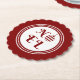 Round red and white Christmas party paper coasters with a Christmas fun NOEL text print and a striped Christmas bauble. Matching Christmas party accessories and decor available at the ScriptoGraphic Design Gift Store.