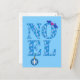 NOEL in a Blue Christmas Tree Pattern Holiday Postcard