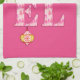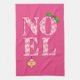 NOEL in a Pink Christmas Tree Pattern Tea Towel