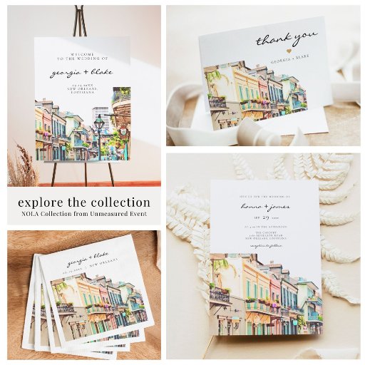 This bachelorette invitation features a watercolor painting of Bourbon Street in the French Quarter, New Orleans. It's perfect for a New Orleans or Mardi Gras inspired bachelorette party or weekend. Backside weekend itinerary included.