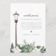 This wedding welcome letter and timeline features watercolor magnolias and a french quarter inspired lamp post. Use this template to edit all wording, font, font colour, and the background colour to match your event style. Click 'click to customise further' in the personalisation section to open up the full editor. To add new icons, visit https://www.svgrepo.com/ and search the icon you need. Download as a .svg and then drag and drop it into the Zazzle editor. Change the colour of the icon on the right-hand side of the editor.