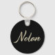 Ein sehr schöner edler personalisierter Button Schlüsselanhänger im whitegold Lettering Look auf schwarz für Nolan.