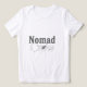 A vintage-styled crow illustration with ornate "Nomad" lettering, perfect for boho and nature-inspired apparel. This wanderer graphic combines minimalist animal art with retro tattoo aesthetics for a unique statement piece.